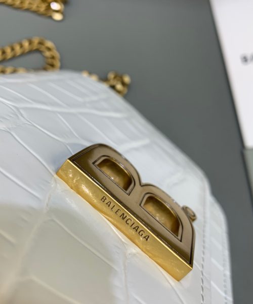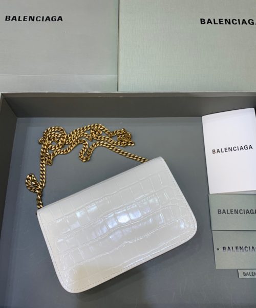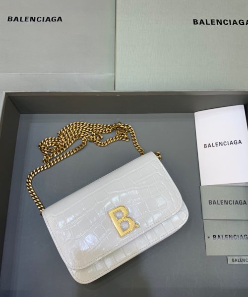 Balenciaga Croc Embossed Patent B Bag With Chain In White, For Women, Women’s Bags 7.9in/20cm