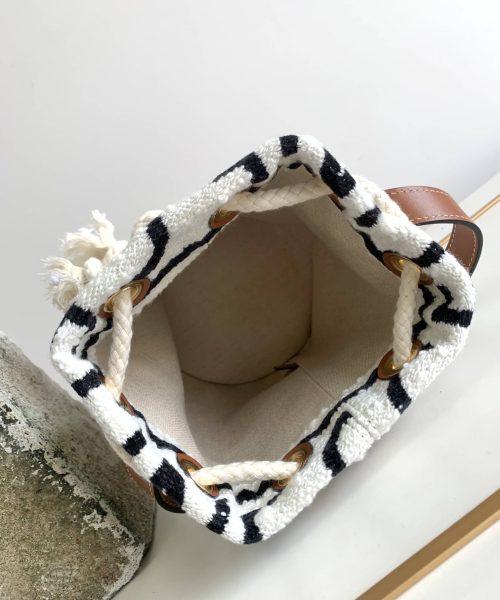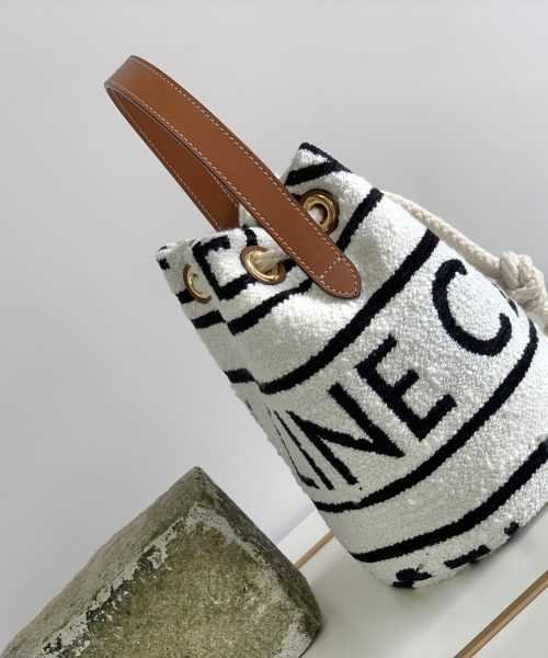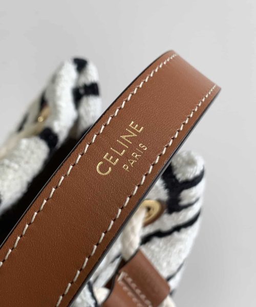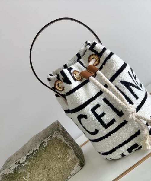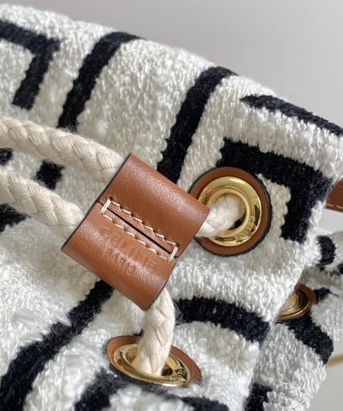1:1 Replica Celine Teen Drawstring In Textile With Celine All-Over White/Black For Women 7in/19cm