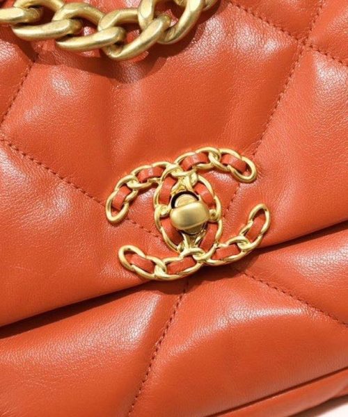 Chanel 19 Handbag 26cm Orange For Women AS1160