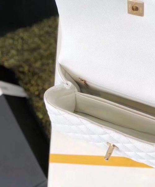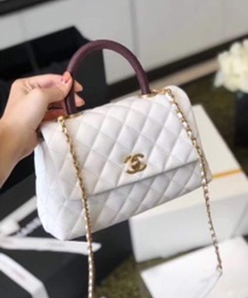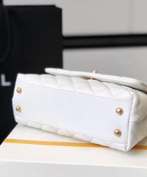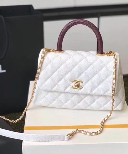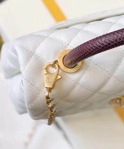 Chanel Coco Handle Quilted Lizard Handle Bag 24cm Caviar Leather Gold Hardware Spring/Summer Act 1 Collection, White