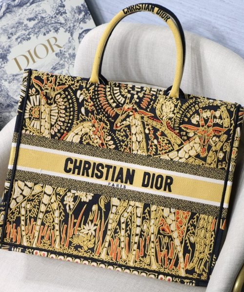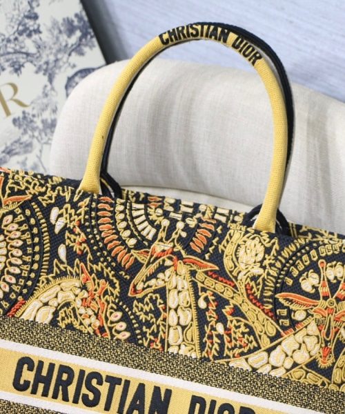 Christian Dior Large Dior Book Tote Yellow Multicolor, For Women, Women’s Handbags 16.5in/42cm CD
