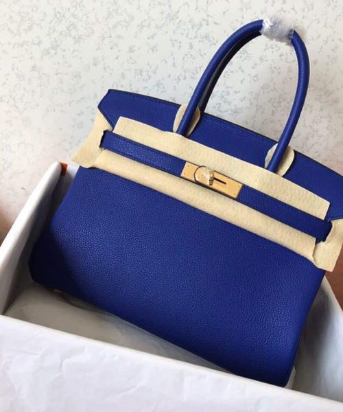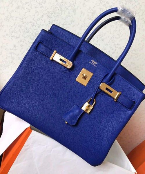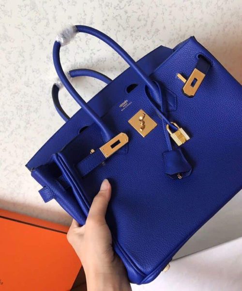 1:1 Replica Hermes Birkin Electric Blue 7T For Women Gold Toned Hardware 11.8in/30cm