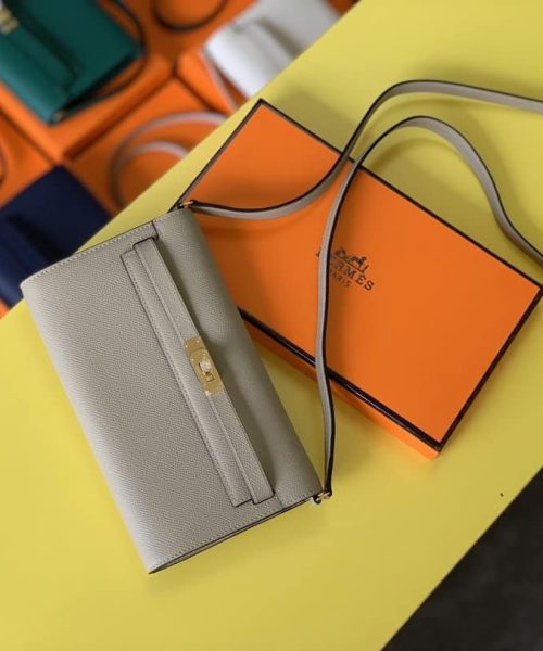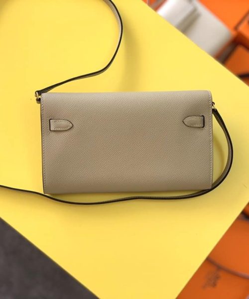 1:1 Replica Hermes Kelly Classique To Go Wallet 21cm/8.3in Gold Toned Hardware For Women Cream