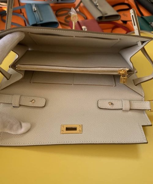 Hermes Kelly Classique To Go Wallet 21cm/8.3in Gold Toned Hardware For Women Cream