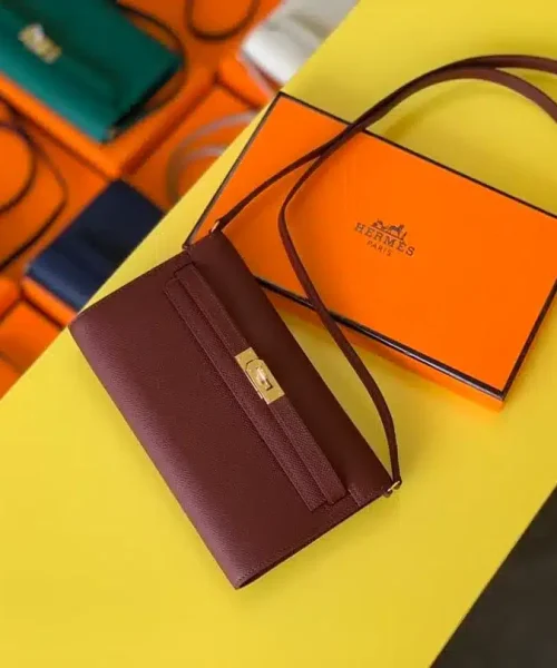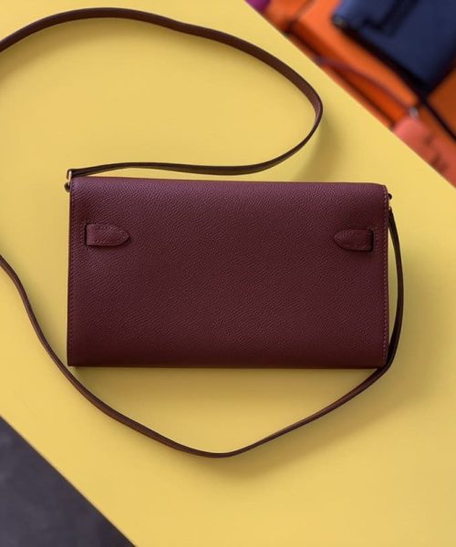 Hermes Kelly Wallet To Go Woc Epsom Wine For Women, Women’s Wallet 8.3in/21cm