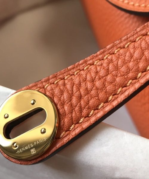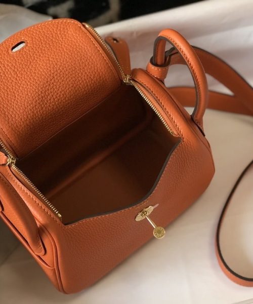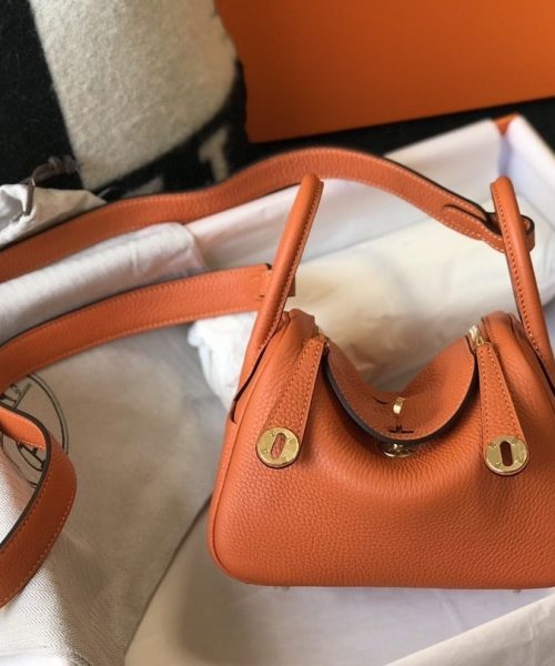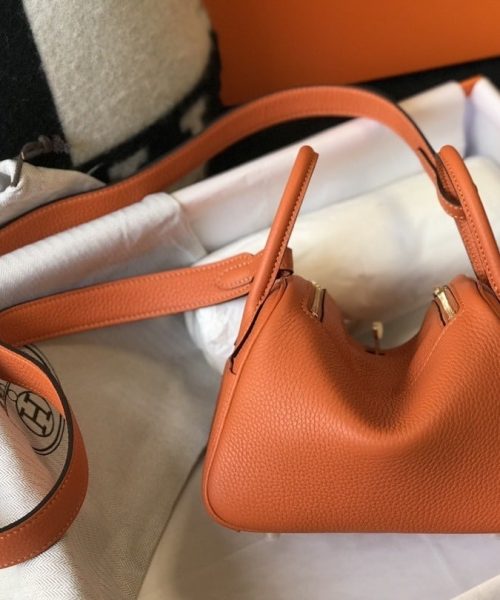 Hermes Lindy Mini Clemence Bag Orange For Women, Women’s Handbags, Shoulder And Crossbody Bags 7.5in/19cm