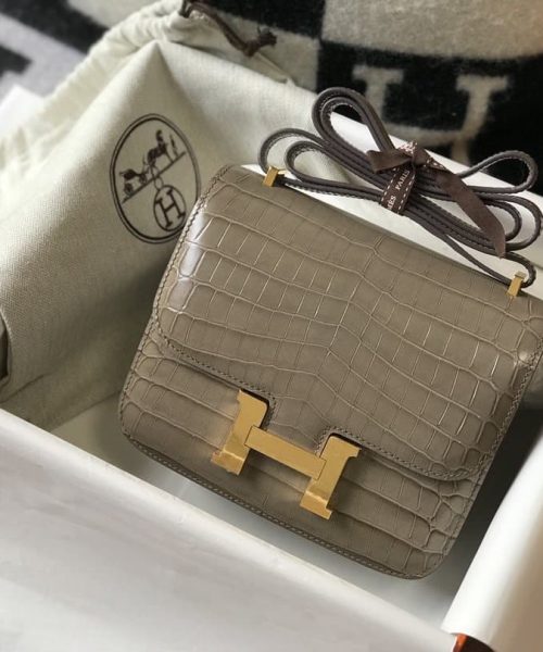 1:1 Replica Hermes Mini Constance Bag Grey For Women Gold Color Hardware 7.1in/18cm
