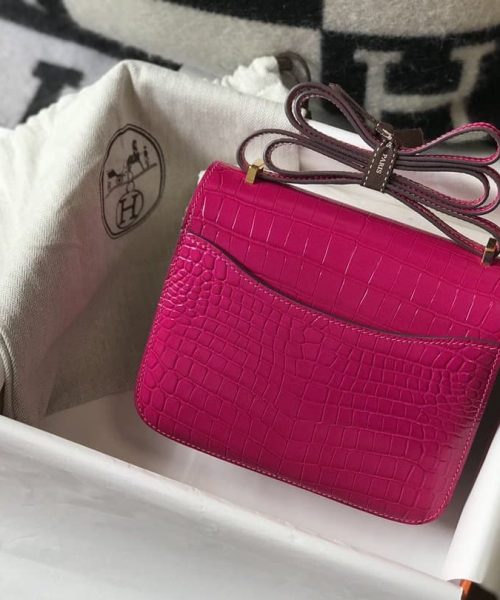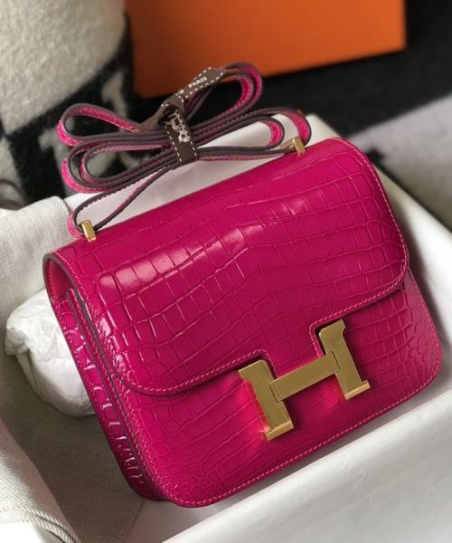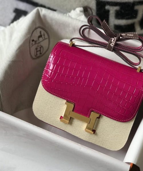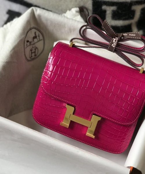 Hermes Mini Constance Bag Pink For Women Gold Color Hardware 7.1in/18cm