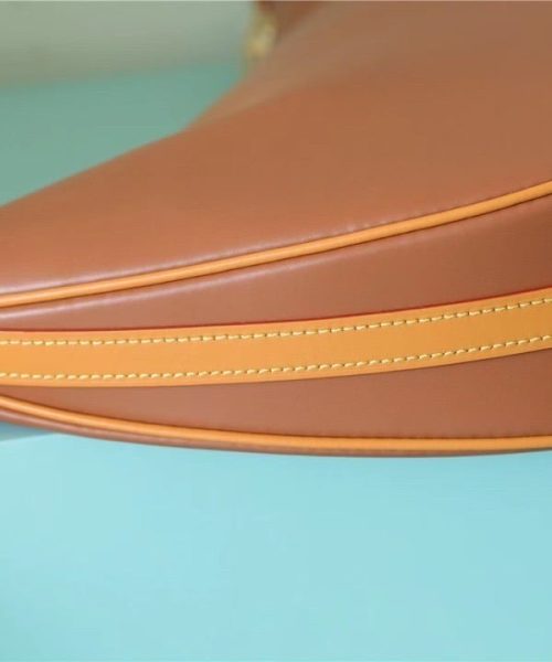 The Loop half-moon bag is fashioned from Monogram jacquard velvet in a bright yellow color, reminiscent of the iconic yellow of tennis balls. The jacquard velour is a 100% sustainable material made from recycled yarn.