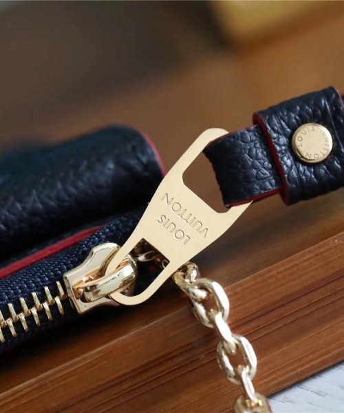 The Card Holder Recto Verso in Monogram Empreinte is an ingenious, multi-functional design. Among its practical features are a compartment with a wide, L-shaped zip, which can hold coins, an in-between pocket for folded bills, an envelope-style front pocket, and three card slots. It can also be hooked onto a bag or belt.
