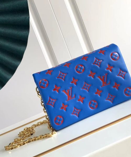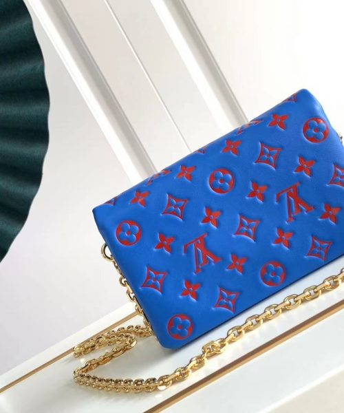 1:1 Replica Louis Vuitton Coussin PM Pochette Shoulder Bag Blue Red M80743 Luxury Bag For Women – 20cm