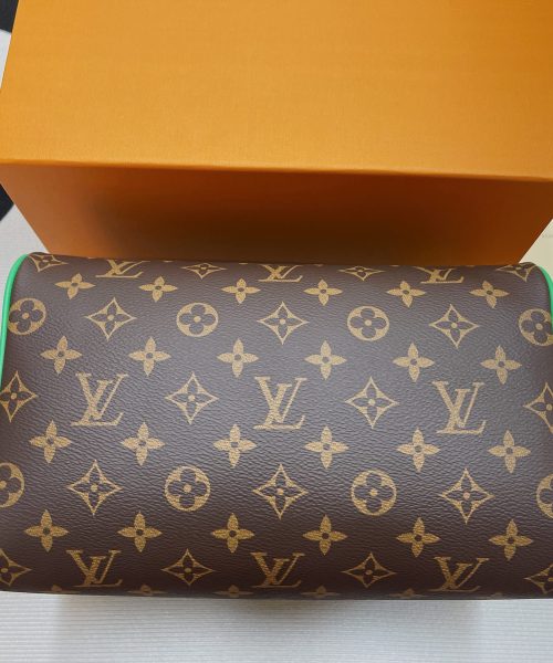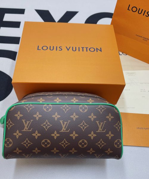 The Louis Vuitton Dopp Kit Poche Toilette gets a dynamic new look with a bold pop of color: Monogram Macassar canvas is enlivened with an intense shade of green trim from designer Virgil Abloh’s signature color palette. This functional travel companion offers plenty of space for toiletries and other small personal items.