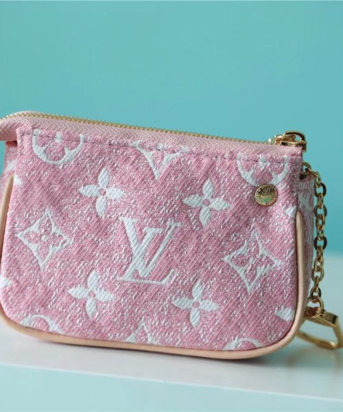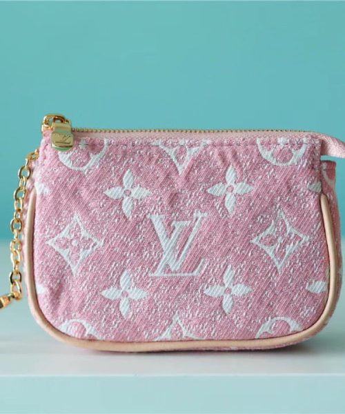 1:1 Replica Louis Vuitton Mini Pochette Accessoires Monogram Denim Pink For Women, Women’s Wallets 6.1in/15.5cm LV