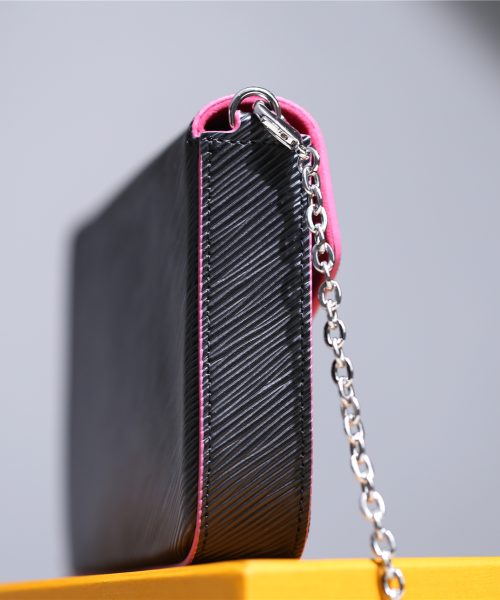 Louis Vuitton’s emblematic Epi complements the simple yet elegant design of the Pochette Félicie. This envelope-style pouch, which contains two removable pockets, adapts to every occasion. Thanks to a removable silver-tone chain, it also offers a variety of carry options: on the shoulder, across the body or in the hand.