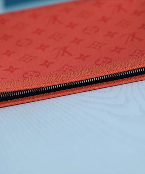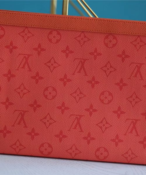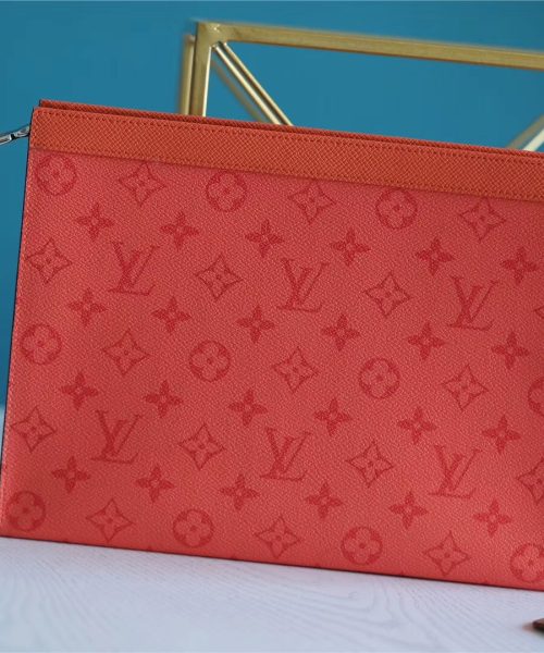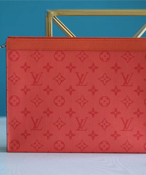 1:1 Replica Louis Vuitton Pochette Voyage MM Taiga and Monogram Eclipse Canvas Red For Women, Women’s Wallets 10.6in/27cm LV