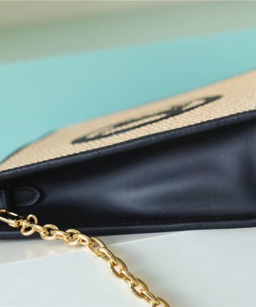 1:1 Replica Louis Vuitton Toiletry Pouch on Chain Raffia Natural /Black For Women, Women’s Wallets 9.8in/25cm LV M81366