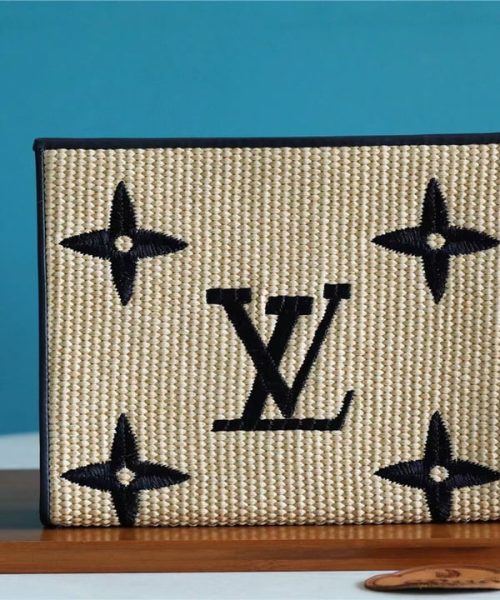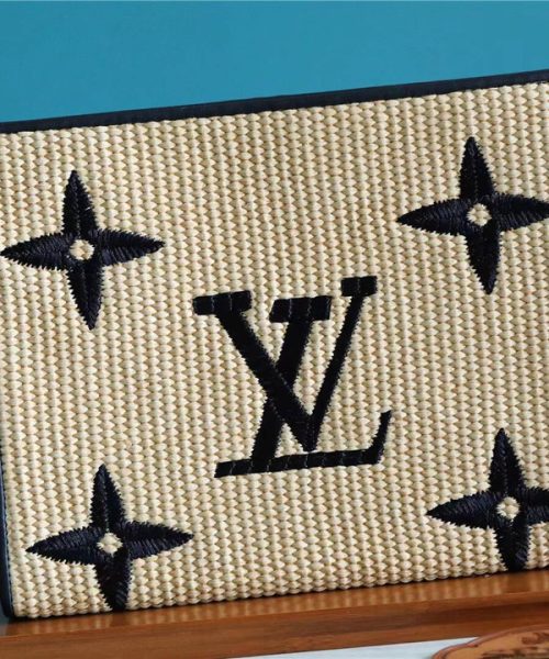 1:1 Replica Louis Vuitton Toiletry Pouch Raffia Natural /Black For Women, Women’s Wallets 9.8in/25cm LV