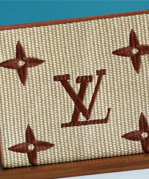 1:1 Replica Louis Vuitton Toiletry Pouch Raffia Natural /Caramel Brown For Women, Women’s Wallets 9.8in/25cm LV