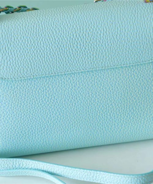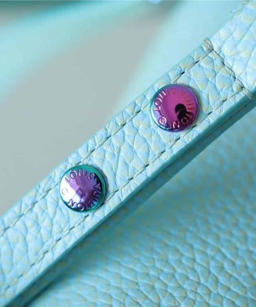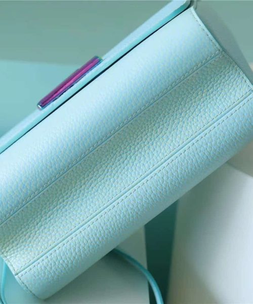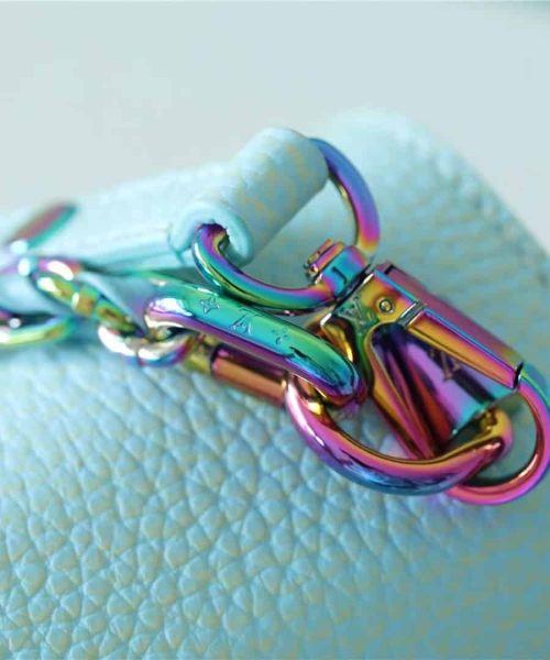This Twist MM handbag, with its dazzling colorway, is part of the Summer Splash animation, inspired by the House’s transversal Summer Stardust capsule. The delicate iridescent effect on the grained evokes the reflection of light on pure, clear water. The colored metallic LV Twist lock and chain interlaced with complete the design.