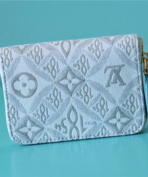 1:1 Replica Louis Vuitton Zippy Coin Purse Since 1854 Jacquard Canvas Ecru Blue For Women, Women’s Wallets 4.3in/11cm LV