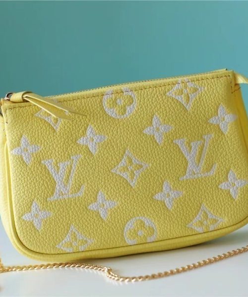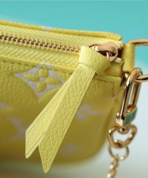 For the Mother’s Day special edition, the Mini Pochette Accessoires is revisited in pastel-hued Monogram Empreinte  with the embossed Monogram pattern picked out in white. Ideal for esssentials, this stylish mini pouch can be carried as a clutch or hung from a bag or belt by its gold-tone chain.