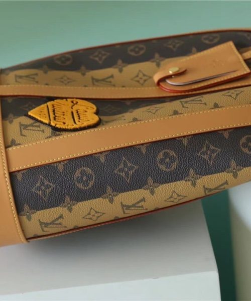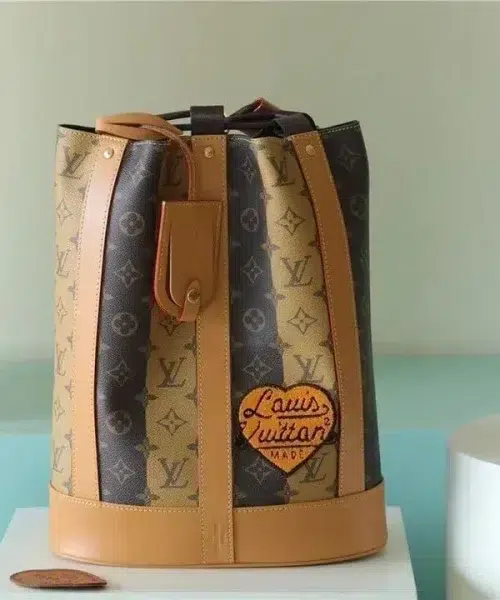 Inspired by the House’s Sac Marin from 1927, Virgil Abloh and Japanese streetwear designer Nigo team up to create the Randonée Messenger bag in Monogram Stripes canvas. The bag is fashioned from a reimagining of the iconic Monogram canvas in which the LVs and Monogram Flowers appear on two-tone brown canvas.