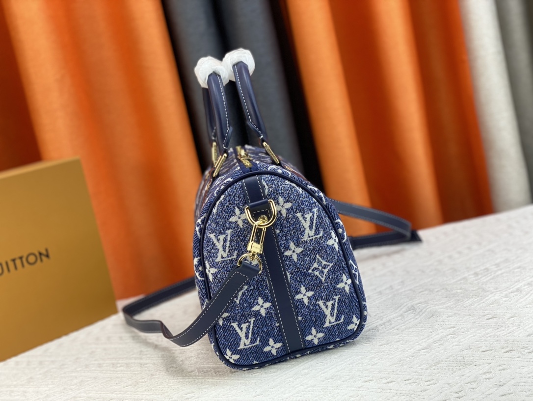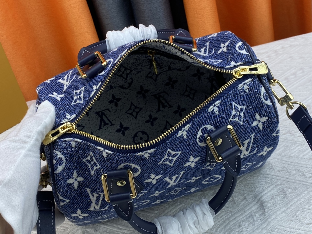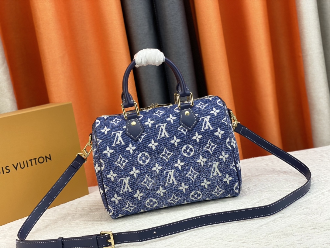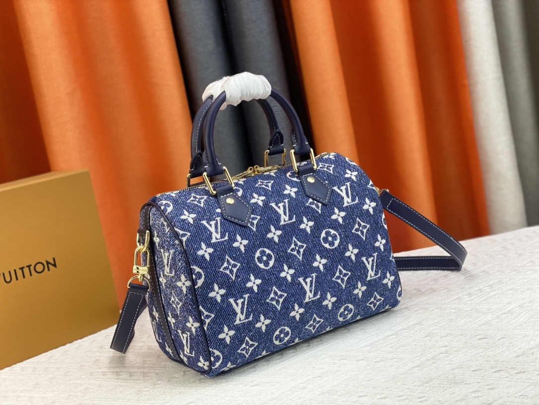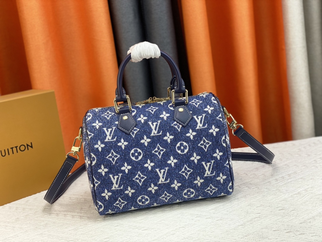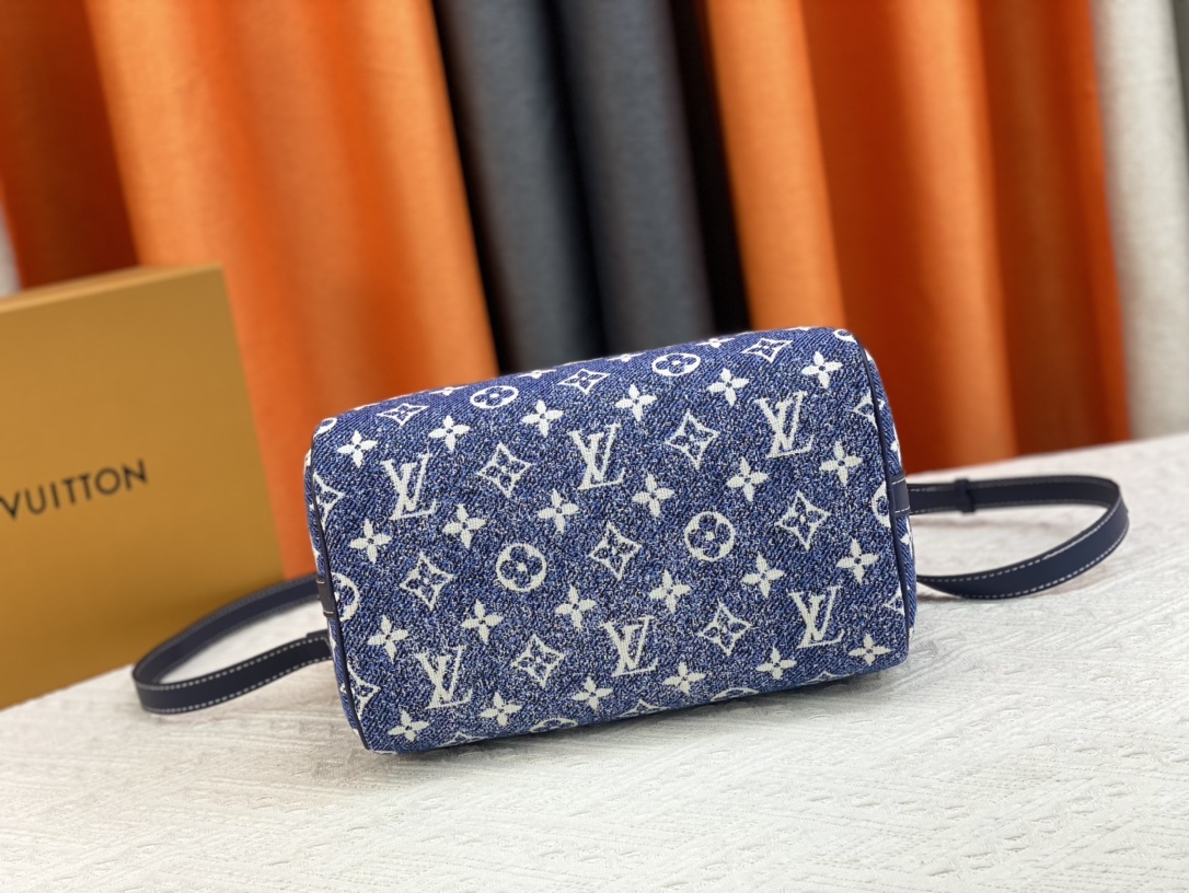 1:1 Replica Louis Vuitton Speedy Bandouliere 25 Monogram Denim Jacquard Navy Blue 9.8in/25cm LV M59609