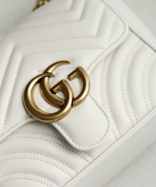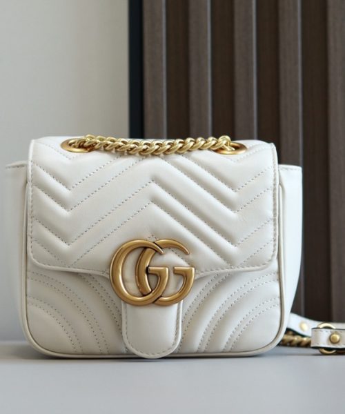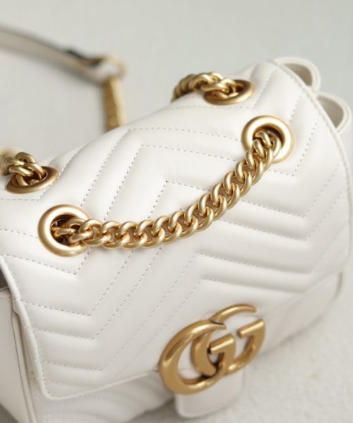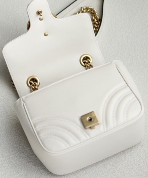 1:1 Replica GG MARMONT MINI SHOULDER BAG P White matelassé chevron leather Exclusive For Women 739682 AABZC 9022
