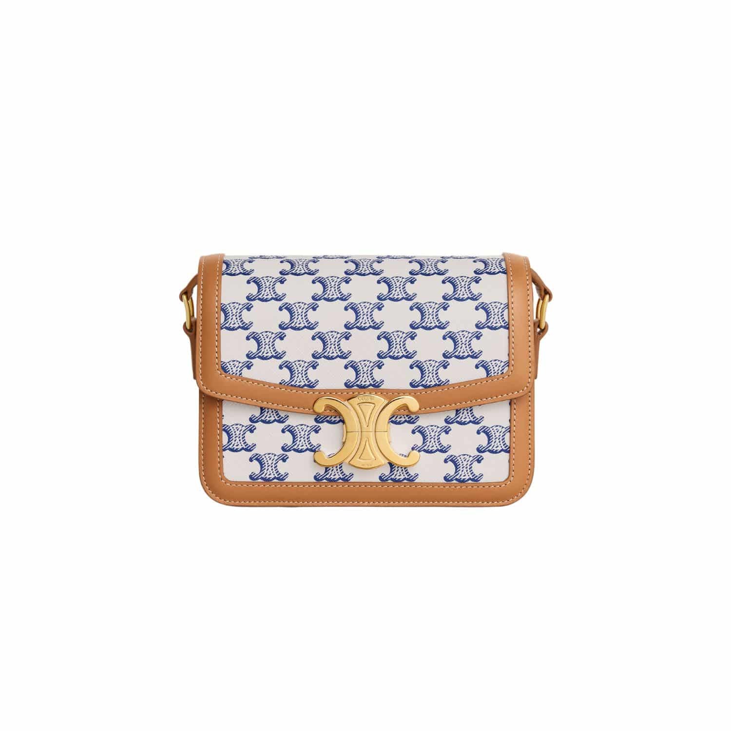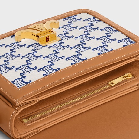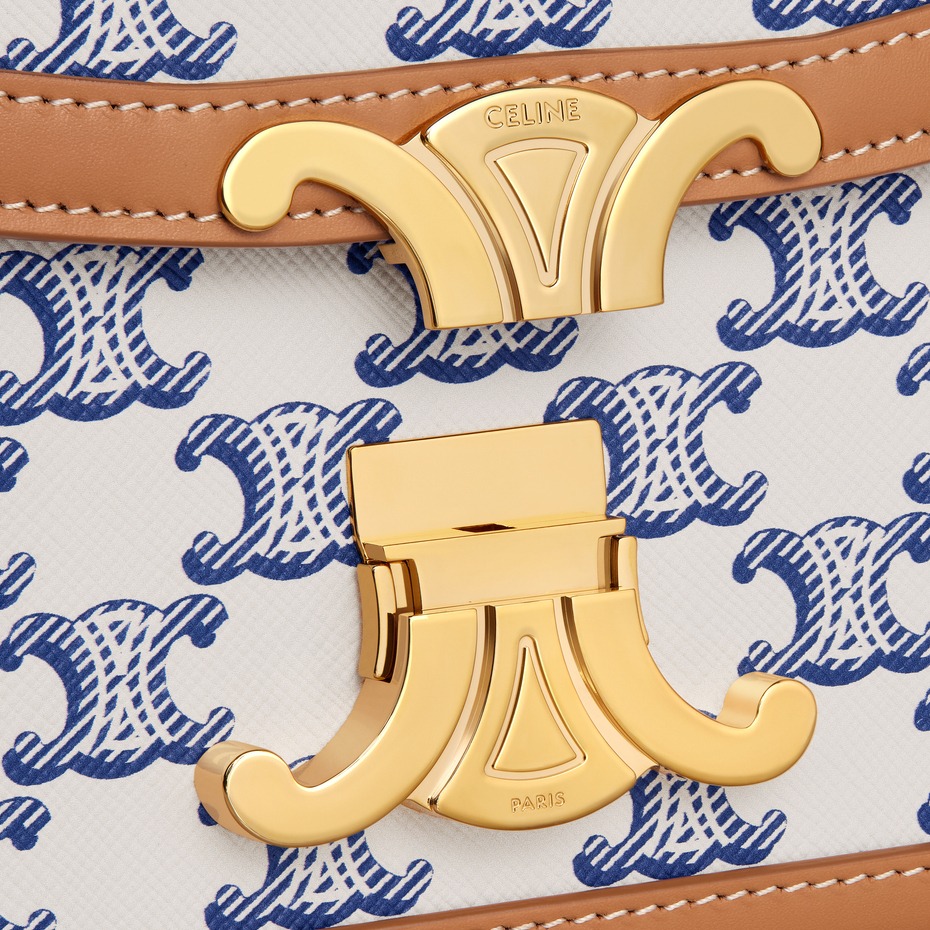 Celine Teen Triomphe Bag In Triomphe Canvas And Calfskin Blue For Women 188882BZ4.07BL