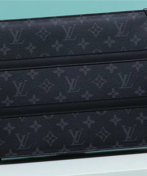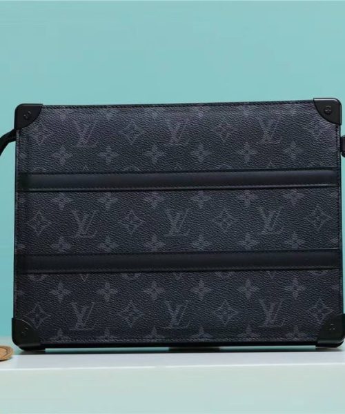 1:1 Replica Louis Vuitton LV Trunk Pouch Monogram Eclipse Canvas Black Unique Bag For Men M45937 – 28cm